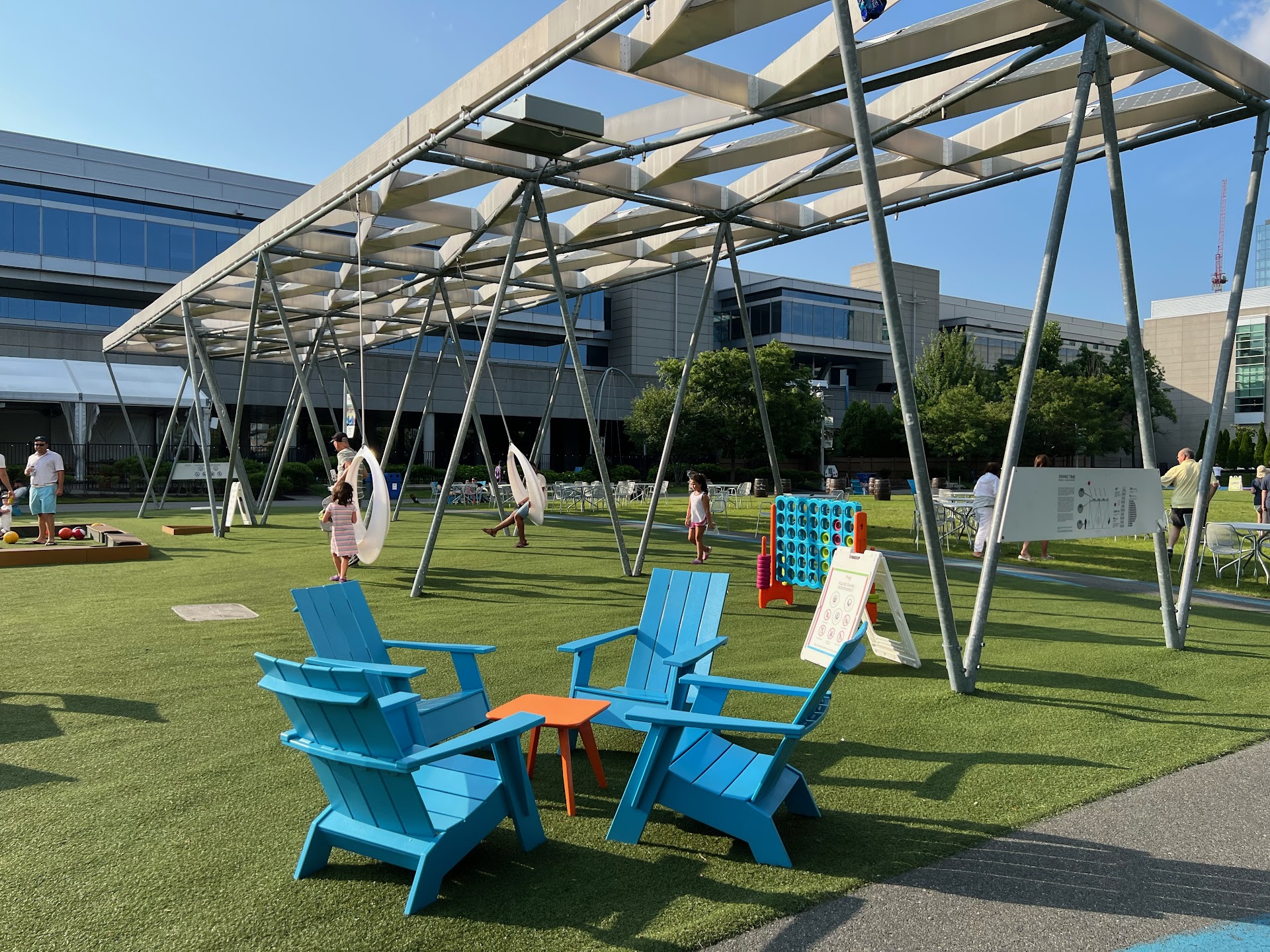 Read moreHonestly, I think this place is waaaaay over hyped. It's all because of the art installation swings. The lawn was crowded, though with many fun lawn games to play. The food is okay, basically cafeteria food. The beer selection was okay, though I was hoping for a more local selection from breweries in the city, as this place is super central to the Seaport district. They should source some more crafty beers for the hipster beer geek crowd like me. There was a band playing live at the end of the lawn where virtually nobody was, while Top 40 was playing over the speakers at the bar and near the lawn games where everyone actually was... kinda awkward. Overall not a bad experience, just a really quirky place that was way over-hyped to me. Free...
