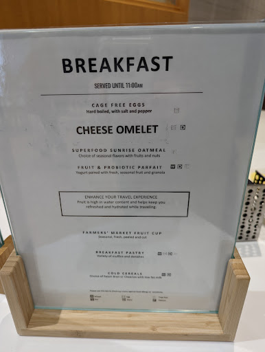 There was a bit of food, little premade heat and serve omelettes that were ok. Basically no flavor to them. They did have some fruit cups and boiled eggs. I did not try either so I don't know how they were. They had cereal which was fine. The bananas were gross. So brown, they looked like they had even passed the time to make banana bread. I like my bananas more on the green side so maybe the brown ones weren't as bad as they looked. I did get an orange and it was fine. They had a nice selection of cold beverages. The very best thing they had was the crunchy oatmeal cookies. I generally don't care for crunchy cookies or oatmeal ones for that matter and I actually ended up eating two there and grabbed three more for the plane ride.
