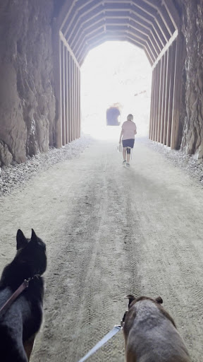 We had some time after a 65 and over baseball tournament in 2024. We went to the visitor center first and right down the road was the trail head. It was a very easy hike . It was late August and of course it was very hot. The trail has a mild incline at best. It has some interesting history associated with building the Hoover Dam. There were several old railroad tunnels on this path. It wasn’t crowded but there were other explorers along the way. There were some very pretty views of Lake Mead and the Marina . My goal was to go through all the tunnels. If I’m correct you could have made it to the dam. This old railroad trail was used to supply the construction crew for the dam. I don’t remember the exact duration but apparently it was something in the 5-7 month time period working for 7-24 to build this railroad. We take our German Shepherd everywhere we go. There was plenty of shade along the way for her...