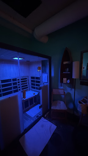 Atmosphere: don't be fooled by the "business look" of the building. Infrared Salt Therapy is a hidden oasis found tucked away downstairs. The modern and beautiful Halotherapy Solutions sauna is centered in a well appointed private room. The decor and ambient lighting is warm and welcoming. Calming spa music can be turned on or off in the sauna with a simple push of a button.