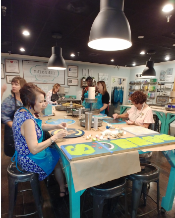 Read moreI picked this place for a date night with my boyfriend. We've done crafty things together and typically enjoy it. However, leaving with what looked like professionally made signs for our new home exceeded our expectations! Our date actually started a couple days prior because it was really fun choosing our designs together. Then, we got there and the staff explains what to do step by step. They couldn't have been more helpful. From knowing what colors would look good together (my boyfriend's favorite color is hunter green. We have no hunter green in our house....teal but no hunter green. The staff helped me feel comfortable by helping him incorporate it into his piece and assuring me it wouldn't be the focus point. It turned out GREAT! lol) to answering any questions to helping to apply your stencil. My boyfriend was the only guy there which is a shame because it's s great date night! We couldn't stop talking about how great it was the whole way home. Try it. Oh and they encourage BYOB and snacks. Thanks The Makers Market! We will be back...