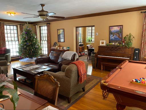 Homey yet elegant, the Inn on Putney Road lives up to the charm one looks for in a Bed and Breakfast. It is cozy and the sense of passion for hospitality comes through. My family member and I stayed a couple of nights. When we arrived, we had space to breathe and become acquainted with the room and house. It felt open, welcoming, and was quiet: just what we longed for when escaping to Vermont for nature and peace. The gorgeous antiques were varied. Each common area was a joy to be in. The room was lovely, clean, and nicely arranged. The mini refrigerator in the closet had plenty of space and there was a carafe of water in it as well as seltzers in glass jars. We let the innkeepers know we were vegan ahead of time, and plant-based popcorn and chocolates, made by local companies, were in a basket on the vanity- a thoughtful touch. There were beautiful pottery mugs for tea and coffee in the room, of spring colors. These were also downstairs for use and there were others for sale: souvenirs to bring home. The mugs are made in MN by a small company, Deneen Pottery. The Harney and Sons looseleaf and bag tea was offered in delicious flavors. All of these mostly local and small business offerings added to the experience. The bed was very comfortable and the bath was delightful for easing the muscles after hikes and cool air. The robes were a luxurious touch. We felt like characters in a period drama: going downstairs to play the piano in the fine room with the fireplace, or for a game of pool. There was also a chess table in another small room which was finely decorated. There were board games and books in abundance. The yard had lighting in the trees at night. Past the bubbling fountain in the middle, there were patios that looked through tall pines at the river below. The stars shone brightly, and we warmed in front of the fire. The Inn people we met were Paul, the owner, and also Fay, and Marie. All were brightly welcoming. Breakfast was exquisite with multiple courses. They took care to provide us filling and flavorful meals with plant-based eggs and sausage, potatoes, grapefruit with a sweet crust of and cinnamon covered in fruit, parfait, and French toast with local maple syrup....