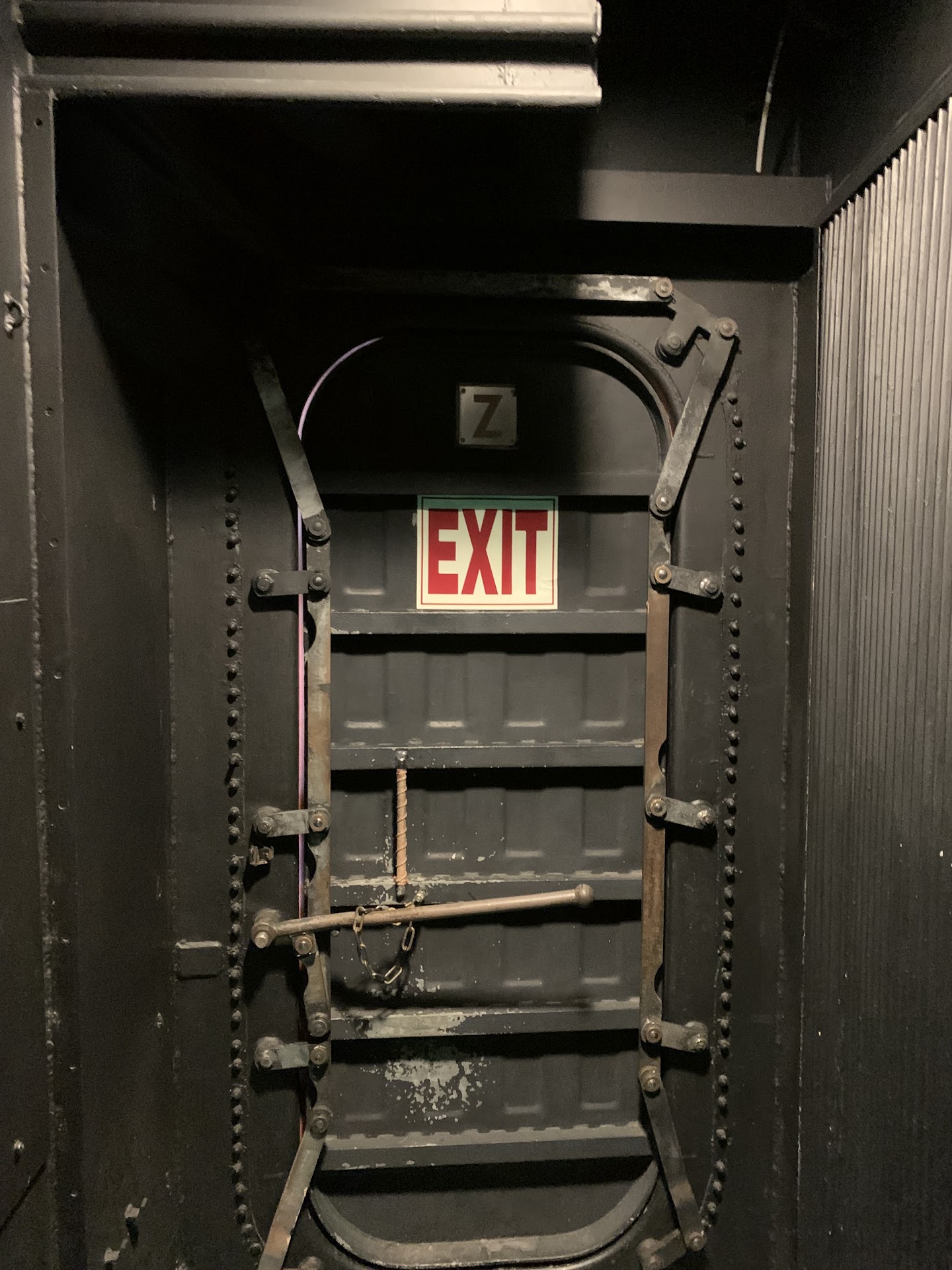 We lost sight of one another as we searched the ship's bowels for an unlocked exit. My partner found an open door and called for us to follow his voice in the dark. When he attempted to re-enter to help lead us out, an employee blocked him. The employee said that he had an errand to run and the ship was “closed.” I thought we must’ve overstayed by quite a bit, but as I exited, I noted the time: 5:04PM. The time stamp on my photo of the locked door: 5:01PM.