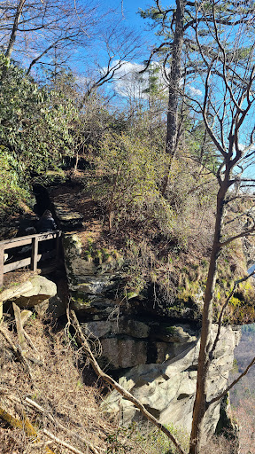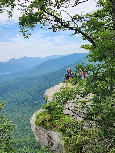 Ok, start with the drive up. It's a roller-coaster ride with switchbacks up to 180 degrees! Once you survive that turn into overlook, parking is great. Nice restroom, and a great visitors center with friendly staff, and history about the area. There is a 3d map with popular areas to go to that was nice. Easy walk out to overlook. You look right at Tablerock Mountain. If you have binos, bring them. Otherwise, they have a quarter fed bino stand. Appreciate the guardrails! Beautiful view, no doubt! I'm happy to have a place to see without hiking up 2000 feet of elevation. Once you walk out to overlook, continue on trail down a staircase into a fissure in the rock-bed through a narrow gap. It's cool, freaky, and disorienting since rocks are slanted. Cool experience but not handicap friendly, so if you have mobility issues or claustrophobic tendencies, turn back the way you came. It's...