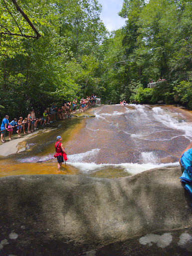 Read moreWe visit this area often and the sliding rock has been on our list of places to go for a long time. So glad we did! It was good, cheap fun. I think it only cost us $3 per person to get in. There had been plenty of rainfall so the water was flowing good. You may want to check before you go. We know someone else who went a different time and there was not as much water and they didn't have the same experience we did. I wore a swimsuit with shorts bottoms and swim shoes (a definite must). We took towels, car keys, phones and an underwater camera because you can film as you go down. It was my husband, daughter and I, so we took turns staying with our stuff. They do not offer lockers. You must climb steps to get down to the area and climb over rocks to get to the sliding area. Once you get to the sliding rock, there is a rail to hold on to as you climb the incline. Sliding was so fun! I think we went 10 times. I thought sliding on a rock would hurt but the water propels you so fast, you glide across the rock. You land in a pool at the bottom. The pool has large boulders in it that you need to navigate to get out. The lifeguards offer a hand up to get out. Take it, it's very helpful. It was a crowded summer day but the line moved quickly. I would definitely...