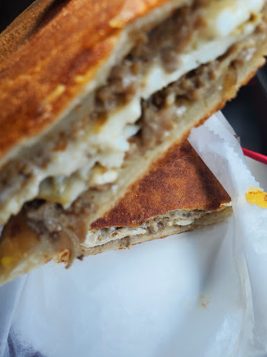 So I ordered a large steak egg n cheese large today and It came with literally crumbles of streak not to mention it was $12.78. It didnt even fill me up so I went across the street to chaves bakery to order a coffee, a REAL steak egg n cheese AND 2 pastries all FOR $13. After eating there for 20 years I will never go back!! First 2 pics are dinos on a large loaf now look at the amount of steak in the last 2 pictures on a smaller sandwich roll. I try to stray from bad reviews but cmon youre located on state st in the hood but have manhattan bagel shop prices. Go to chaves or If you want a pressed breakfast sandwich go to conchinita on lewis st right...