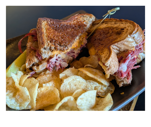 I was pleasantly surprised there were a lot of things on their menu that interested me, but I love me a good reuben sandwich and they got me with a - correct me if I'm wrong - but a whiskey braised reuben that was on special. Maybe it was the beer braised which is on the regular menu, but whichever it was, I'll be back when I have a hankering for a reuben! It was delicious. They didn't have fries, but I loved the chips and the sandwich was on a great marble rye.