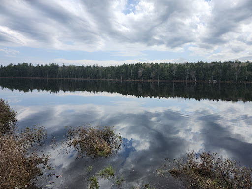 nice trails. parking area, with a bathroom. no camping. though I wouldn't bring a dog because there are board walks and there feet could go through slits and they could be hurt. though great for kids! and lea leaves a canoe with life jackets for the publics use! rently put in a new longer trail that stays off the board walks. wild berries grow all over here. great fishing!! and very possible to see other wild life. ex. turtles, deer, birds, beaver,...