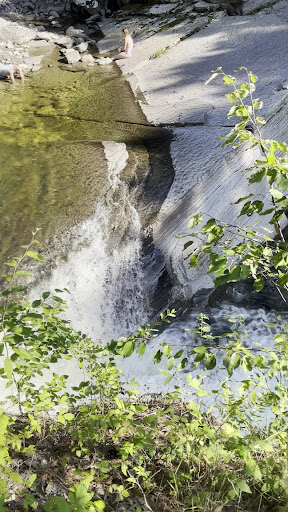 As others have said, many good swimming holes and people tend to respect your space. Past the big waterfall there is a great swimming hole next to slanted rocks that are like "slides" where you can sort've let the water current push you into a deep pool and swim back. Though of course water levels have been inconsistent this summer so the last time the slide was out of order but I was still able to sit on the rocks and let the current flow around me.