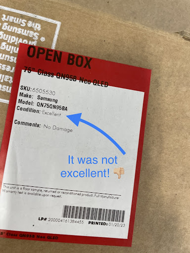 Read moreI found an over-the-range-microwave on the website that was “satisfactory” condition, which states “minor noticeable cosmetic damage.” Ok fine we will go check it out. We go there and ask to open the box. Employee opens the box from the top (one staple needed to be removed) and we look and it looks perfectly fine. She said “I don’t think this was ever opened since I had to remove a staple.” So we said sure and bought it. We get home and I mount the mounting gear and I drill the new holes in the cabinet above. We take it out of the box to mount it and BAM the right side near the back was dented so bad that the back of the microwave was protruding out enough that the microwave literally wouldn’t be able to be mounted. So we brought it back to the store. It’s partially my fault for not pulling it out completely in the store but it’s also Best Buy’s fault for 1) marking that as “satisfactory” and 2) selling something that literally can not be used. Luckily we dont live far away but if this happened to someone who lived far away, Im sure they would be irate.
