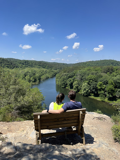 I navigated the route using the AllTrails app. Parking is available right in front of the trailhead, just off the side of the road. There's a trash can at the trailhead. The trail markers don't match the route AllTrails shows, but both are viable trails. The AllTrails route has more views of the river, with additional benches and stopping places along the way. The marked trail has switchbacks down from the summit rather than the straight shot used by the AllTrails route. The views are stunning: the river below and surrounding mountains. Trail is well shaded. Humid and wet at the beginning in the lower parts (might be muddy, especially after a rain). This is a challenging route for small children (under 4), with a good amount of uphill. I recommend going in the opposite direction that AllTrails suggests, do the uphill part first (the right fork at the beginning of the trail); which gets you to the views faster and uses the most energy at the beginning of the hike, with a downhill and long flat...