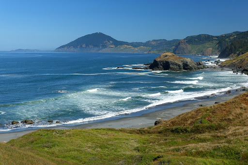 Read moreA nice place for a quick stop and stretch your legs. Not much of a Park in terms of facilities (really anything) but there's a dark sand beach and a couple of volcanic plug islands to explore around. The parking lot sucks, it's a rough, uneven gravel pullout directly off the highway. Need to get up to speed fast when pulling on. There's a trail down to the beach and two large rocks, almost looks like a road in places. The sea cave is kinda neat, and though we didn't go to the sandy beach, it looks like it would be a nice place to have a picnic or relax on a warm day. Scenic, but not a ton to see or do here if you weren't planning on a beach day. Worthy stop if you happen to pass by while on 101, but I wouldn't plan a trip around this...