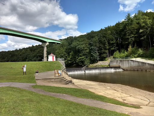 Read moreWe stopped here with our dog since we've seen this park from I-80 plenty of times, and we thought it looked quaint! So, the actual park itself does not allow dogs. Which of course we thought was just not nice! But there is a sweet man made waterfall. There also is a suspension bridge for foot traffic which leads you to a picnic area and from what we could tell a decent trail that does allow dogs. We walked/ ran with the pup for about a mile maybe a little more. Also, there was a dog poop bag dispenser at the front of the bridge and trash bags along a paved path from the parking area to the...