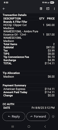 Read moreI'll start by saying Madison was super sweet. And giving 3 stars has nothing to do with her. She was very professional and my shampoo and head massage was great. My only issue with the establishment is that I was very specific about what I wanted done to my hair and what my hair type was before scheduling an appointment. I wanted a hair treatment, trim and blowout and made sure to tell them my hair was thick, coarse, and coily. She gave me a price and I scheduled. After getting washed and blow dried and she started to straighten it, the manager told me I had to pay an additional $30 because it wasn't a "traditional" blowout. I wasn't quite sure what that meant but I assumed it was because she had to straighten it after blowdrying it. Every blowout I've ever had, straightening was part of it. Anyway, I didn't complain, I just paid it, but the manager did come over to help her straighten it to get it done faster but the straightening job wasn't the best. My hair was still frizzy when I walked out. I felt like it was a rushed job because it was getting late. I had to go over it myself when I got home. Definitely not worth the extra $30. Now my experience wasn't terrible and I think they do a great job with certain hair types. Again, Madison was a sweetheart, and the salon is beautiful. I just might choose somewhere else where they specialize in my specific hair type next time. I may go back for a facial or something because the atmosphere is great. Just not...