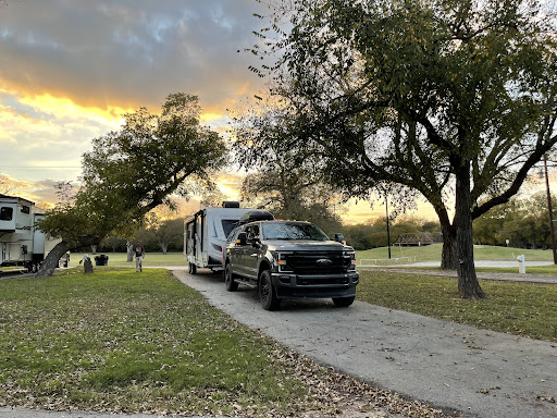 Unfortunately, our trailer needed some emergency work done in town. Fortunately, after the shop made the necessary temp repairs, we were able to secure a spot here. It was well priced and had long paved pull through sites with full hook ups. There are pecan trees and a bit of grass between the sites. There are no picnic tables or fire pits which didn’t bother us much. There are showers and laundry machines which we did not utilize. There is a wonderful and peaceful park right there that has a playground, a field, and walkway. It was a nice and quiet area. We thoroughly enjoyed our stay and will definitely keep this place in mind if ever we are in the area again.