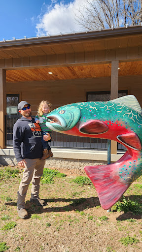 This is a very special place in Bryson City NC. There are several large Fish Tanks with local fish that are found in the Mountains of Western North Carolina. There are Bass and Sunfish and a Hellbender Salamander and of course Rainbow Trout! Now Open next door is the Western North Carolina Trout Museum. There are new Restrooms and the place is pet friendly. This is also the place where the Farmers Market is held every Friday and Saturday. There are also some picnic tables available for you to have lunch or just enjoy the Tuckaseegee River as it rolls by. Don't Jump Too High when the Steam Train Whistle blows from the Great Smokey Mountain Railroad behind the Aquarium. Come on and enjoy your day at Beautiful Bryson City NC. So...