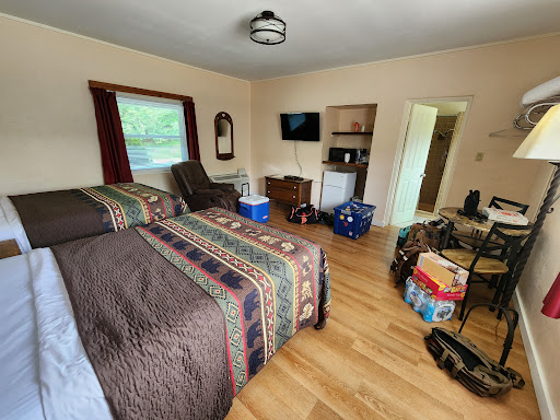 Read moreOn our 2nd nogjt here now, we got the cabin. It is small, if you are comparing it to your house. If you are from a city and here on vacation, you will notice that you can hear outdopr mountain type sounds. As for the property itself, there is water pressure, air conditioner that works well. Fridge, stove top, grill, sink, and a stocked kitched supply. Owners (Rod and Melissa) live on property and have posted hours from 9am to 10pm. They can accomodate special needs outside of those hours. Cabin has a nice queen bed with a sofa pullout in a other room. Shower is not a large one, it reminds me of a cruise ship size. Again, this is a small 2 person cabin. Pricing was very reasonable, and owners appreciate cash hint hint. At the cabin, you will have youw own private parking area as well as your own screened in front porch. There is a large grocery store 1 minute up the road that is open until 10pm, so if you forget to bring bug spray (like we did), go hot up isle 12. 3 minutes in the other direction is a shell station and a walgreens. Cabin has wifi and also satellite tv. Not really sure what else you could want. Oh, the only downside, if you are expecting a commercial big name hotel experience is that you will have to bring your own tissues. I know, it sounds silly, until you have to blow your nose with toilet paper. You make that trip to walgreens pretty fast ;) Its a great location, and I would certainly stay again if...