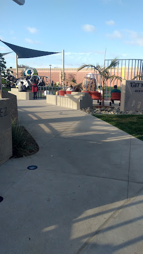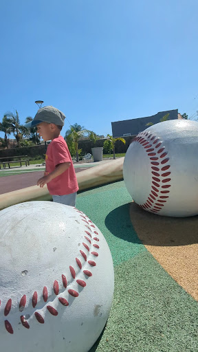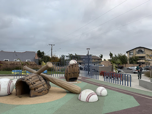 The Rick Gomez Park was such a great idea with the nod to peanut league. But sadly this place is so depressing. It was such a beautiful and inviting park. With a wonderful and unique theme of baseball. But sadly that did not last long. One of the swings is already broken off, a section of the Astroturf is coming up, pieces of the climbing steps are always coming off and loose and Usually there is trash under the playground. There is graffiti on the playground and on the cement sitting stones. I do really enjoy the workout areas The one next to the playground and on the other side of the cul-de-sac. I do also love the playground and the swings both of them(when there were two). There is also a very fun light game that surprisingly still works. And the giant gloves with surrounding baseballs and bats is super fun to climb with your children. Hopefully the city of Buena Park gets better at maintaining...