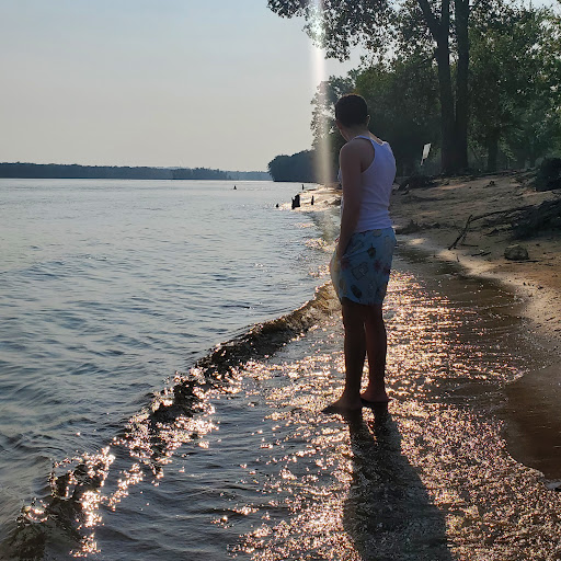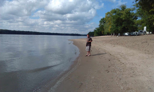 This is beach was just a nice, simple, out of the way, family place to hang out at the Mississippi River for the day kind of place. Just what I was looking for, for my familia. ππ½π They had a few picnic tables available that was great to have for us all to sit and lunch and snacks at and to keep our stuff of the ground. The beach itself was surprisingly free of amy litter. It seems to be maintained by the city maybe as there is also an actual, little, park kind of bathroom building with a Men's and a Women's bathrooms with 2 stalls in each of them and actual working sinks. Not too nasty either! ππ½π there is a water, hand pump outside of the bathroom building that is great for washing the sand/dirt mixture if rhe shoreline, off of your feet, shoes, etc. Good pressure too! ππ½π There is Plenty of parking in an actual, paved parking lot with different sections for trucks with boats/trailers and a small RV camping aread it looked like as well. We discovered that this place had a Beach Volleyball court with the sand in it which was a great surprise as my hubby and I love Volleyball! Beach volleyball for me especially! ππ½π There are No life gaurds here I must add so all must take good Care going into this mighty river of course as it is huge ao has a Strong current so only strong, experienced swimmers should venture out to actual swim and Only with a partner to be on watch just in case, I would say is a Must! Keep children in the shallow area near the shore of course! Lol. My 13 year old knows how to swim but even he isn't a strong enough swimmer to take on that current, nor my husband or myself and I am the strongest swimmer in our family but I went out a little ways and was pulled a bit by just that Beginning bit of the current so I dared not go any deeper out then where I could touch with my tippy toes.. π«π π½ββοΈππ½ All in all, this place is Free and sufficient for a simple fun family day...