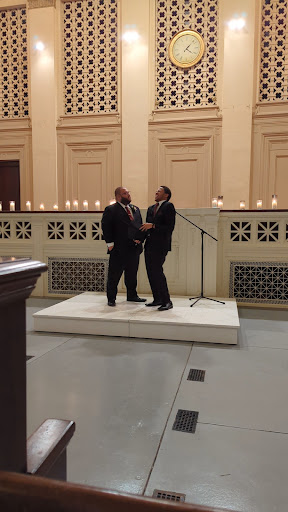 We saw a small, curated display of documents all related to music. Beautiful laid out on red velvet and well lit, there were hand written letters and sheet music from some of the most famous classical artists in German, French, and English. There was a smaller display of documents relating to the Titanic that the gentleman (the docent maybe?) explained had been put out to accommodate some school tours and homeschool co-ops. We had the place all to ourselves on a Sunday afternoon, which was lovely. I noticed there was a small area set aside that a child could play at. Also the building has amazing acoustics, which I discovered when I had a sneezing fit that echoed beautifully all around. I would definitely recommend taking a half hour to check out the display. You can also easily make a donation (they have a QR code in the vestibule if you...