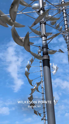 After 30 years, through the 70's, 80's and 90's, ineffective waterfront commissions twiddled their thumbs while this post industrial waterfront land languished. Finally the right people at the right time decided to get in action. The result is an extended park that goes for miles along Buffalo's inner harbor connected by walking and bike paths. The vestiges of old slips where Great Lakes steamers once moored separate a series of contiguous sub parks of which Wilkerson Pointe is one. It's clear the designers were allowed to play while designing this park. There is a small beach, a large field for playing and events, winding trails, picnic shelters, bathrooms, and the cherry on top, the whimsical stainless steel mobile sculpture that stands on top of a spiral pathed hill. As the sculpture captures the wind off the lake like a high tech weather vane, it connects visitors to the site, reminding us we're at the edge on an inland ocean and of how we harvested the elements to move ships and build cities. Plus it's just a cool sculpture. We picnic there sometimes then just sit on the edge, our legs dangling over the water and watch the lake, which beautiful any...