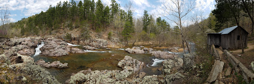The Klepzig Mill and Farm Complex is an excellent example of a small, remote Ozark "tub" (turbine) mill and farm unit of the 1920's. The complex is made up of 121 arces rough terrain with under half of that being able to be row cropped each year and still has some wild horses still lingering around in the hills.All of the buildings, yards, roads, dam and the stream remain in their original condition except for the wear of time and recent neglect. The mill itself is a prime specimen of what was once a rather common type which have all but disappeared in the eastern Ozarks. No similar building is on the National Register of Historic Places for Missouri nor are there any on the state-wide inventory. The road is not for low clearance vehicles... this is maintained but this is ruggedness terrain and flash flooding is major and will cause problems. Please respect and don't litter. Klepzig mill sign go left on Co 522 and it's a NO CELL...