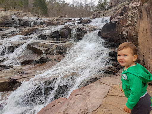 Very neat place to visit. The water was a little low, so it was only flowing over one tiny portion of the rocks. Still plenty of cool refreshing water to swim and play in at the bottom though. In the deepest parts it was between waist and shoulder deep to an adult. Had fun climbing on the rocks, and there was a small natural water slide that the kids enjoyed. Great place to take younger kids, just make sure you keep an eye on them. Slipping and falling on the rocks hurts.