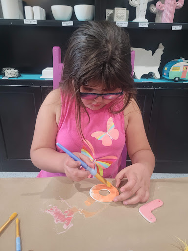 Pretty little pottery painting studio... Nothing different from the average place. Went for a birthday party. The staff was mediocre... Friendly but not interactive. They gave me mildly irritated looks when I requested extra paint ...however they didn't give the girls enough to begin with. One small dollop doesn't give them the three coats they were instructed to put on their animal. They accommodated cake and facilitated gift opening. They didn't provide any decorations or paper products like plates or napkins. It's tucked away in a business office with not much parking available and all of it on the street. I think they have potential, but I probably won't drive the distance to go there again. Might be better as a grown...