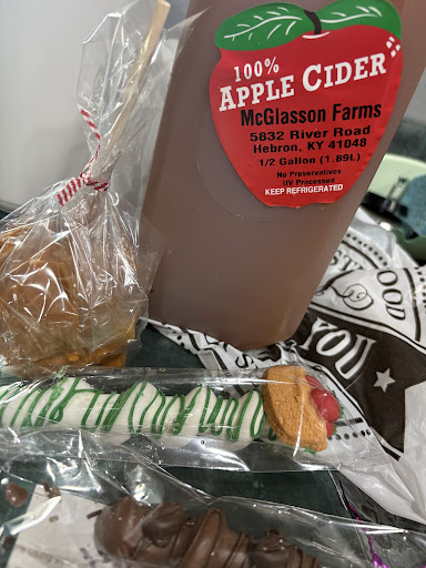 Read moreFirst time here. Super busy and didn’t have corn or beans. They sold out too fast. (That’s ok). I purchased Apple cider, caramel apple and 2 pretzels. The sign next to the pretzels stated “if you break it you buy it”. I’m not much on the sign- but I get it. My pretzel was already broken but I bought it. Unfortunately it was very stale and almost bent instead of being crunchy. So do be aware of your pretzels. The other pretzel I purchased was good. The caramel apple was tasty and had lots of caramel. Apple cider was the...