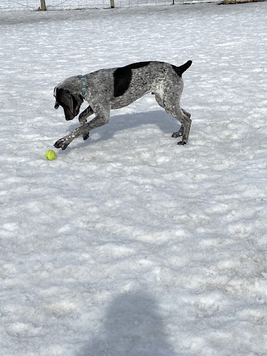 There's a 'small' dog meeting area at the entrance and a 0.4 mile fenced in loop around a small pond with a sign posted that the water can become stagnate and dangerous to dogs during warmer months. Because the water area is separate from the rest of the park, it is possible to keep your dog out of that area altogether which is nice if they lack willpower like mine do. Opposite the entrance, there's a larger area for more energetic or bigger dogs to play and fetch; this is usually devoid of any grass as it gets trampled daily so on wet days, prepare your dog bath ahead of time. Gates by the entrance and outside the large dog play area help contain your dog but the overall area is small enough that you don't have to worry about completely losing track of your furry friend. There are usually free pet waste bags supplied by a local pet store and I've gone at various times and haven't encountered overcrowding.