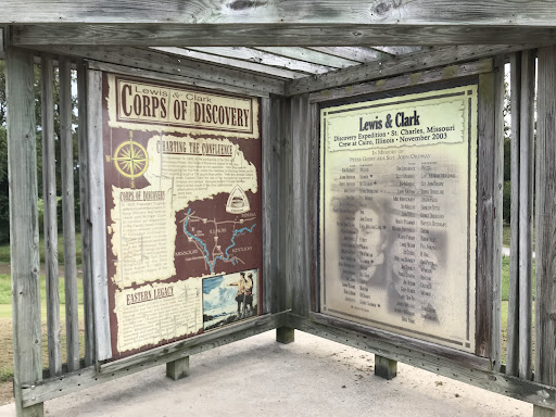 The view was great, and the park wasn't badly dirty - nothing like the 30-year-old article from the Chicago Tribune which is inexplicably easily found on a Google search for "Fort Defiance park,", but overall atmosphere was one of poor maintenance and abandonment. A concrete foundation was near the parking lot and observation tower, but it was impossible to tell what it had been. Very little signage other than the monument to the Lewis & Clark expedition which does admit that the actual confluence was some miles north two centuries ago.
