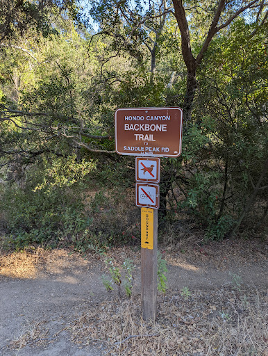 This is a wonderful hike with plenty of trees and shade. It is all uphill from this point towards saddleback road, and according to the signs it is about 3.3 miles to the road. Be aware that there is no service for most of the hike so come prepared with water and snacks if you need. It is moderate in intensity but can be done by anyone as long as you pace yourself. There are beautiful views of Topanga Canyon...