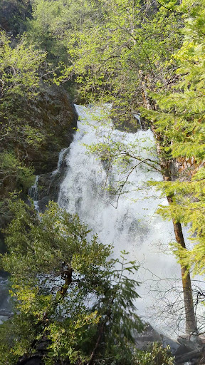From the southern end of Lake Siskiyou you'll take the unpaved Ney Springs Road to the trailhead. From the trailhead it's a steady climb up Ney Springs Creek. About where you see the remains of an old developed springs, you should see a narrow trail leading down to Ney Springs Creek and the falls will be above you.