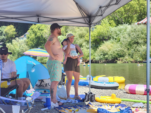 This little spot is truly a little slice of heaven. We usually bring our own food and coolers. There is a Safeway right up the road before you enter the beach area. We also bring our own Water floats and toys ( water guns, shovels, buckets, tennis balls to throw and catch on the water. I highly recommend to bring a Sun Canopy, folding chairs ( sport chairs) as well as some kind of flip flops or water shoes especially for the younger ones. There is a wooden deck/ path that takes you almost to the river but after there are small pebbles rest of the way and they can get extremely hot and can be not so comfortable to walk on especially being barefoot. Bring a beach umbrella if you don't have a Canopy. Bring some kind of tarp to lay on the pebbles or even blankets for you to lay or even sit on. They do have a wooden park bench but if you don't get there real early it would most likely be already taken. I would also suggest to bring Folding Camp Chairs/ Sports Chairs so you can sit right at the edge of the river to dip your feet in. We also bring our own little music speaker to enjoy some nice music. They have plenty of round floats and canoes to rent. Plenty of parking... lots of information hopefully it's helpful. Please enjoy 😁 One more thing DONT FORGET SUNBLOCK....!!! And stay...