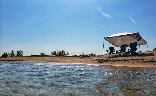 This beach is sublime! It truly is. It is beautiful here and it's all soft sand. No rocks. There's somewhat of a boat launch for small watercraft. There is no way you will get a big boat in here, the water is just too shallow. I've seen the jet ski owners have to get off and push multiple times to get out to open water. Speaking of which the water is very shallow even 100 feet out. The beach is also lengthy. 1/2 mile of beach each way you look. If you get here at 9am you will have the whole beach to yourself. As far as crowds, it can get busy by early afternoon but we've never felt crowded here.
