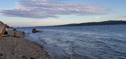 Calm and beautiful place nestled in the Camano Island State Park. The stairs take you down to the beach. The beach itself has just pebbles and gravel and no sand. Ample of parking and picnic area. View of the Whidbey island and Cascades. Quaint place to spend afternoon. Discover pass...