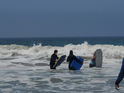 The waves picked up almost with perfect timing after an hour and our friend's son had gotten comfortable with boogie boarding. It wasn't crowded, the sand was smooth, and there was one alert lifeguard (although he had a fairly large area to cover). The only drawback was no restroom or shower water...