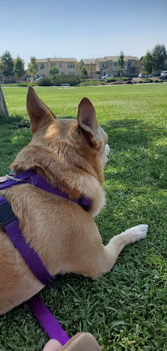 I have lived next to this park for 3 years now. It's beautiful and has a large loop path around the park for walking. I walk my dog here frequently. Grass is well maintained, play apparatus looks well kept. Grass area is large for soccer or kids to run and play. There is a covered area near the play apparatus with picnic style tables as well as a few uncovered ones across the grass. Cute "gym" area as well. Dog poop bags are available as well as a few trash cans. I've never used the restrooms here.