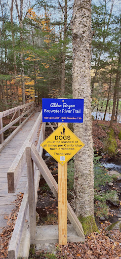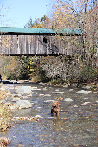 Great spot for swimming on a hot summer day. Plenty of parking, couple of picnic table, kid and dog friendly. Just across the covered bridge is the Alden Bryan Brewster River Trail. There is a hidden spot, about 6 minute walk or less than a minute drive down the road. The only marker is the travel information sign. Parking is limited. Chances are, you will see other cars parked there.