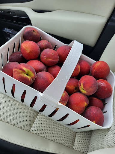 I stopped in twice, end of July and end of August, for peaches. During the first experience, the mid-aged blonde woman came straight to me and stood within two feet watching every move I made as I looked across the various peaches. She seemed to grow more agitated every time I attempted to inspect my prospective basket purchase, only lifting those on the top to check those underneath and feeling the peach's firmness. I commented about a couple of peaches having bad spots and what looked like worm holes. She immediately raised a defensive and condescending voice insisting they were fine, carefully inspected, and they would not sell damaged peaches, those were holes from birds pecking them, not worms. This experience was growing more and more uncomfortable. I really wanted peaches and quickly selected a basket, which she snatched from my hands without a word and went to the check out table. Why not say something polite or inform the customer of your intentions? I was not going to run off with the basket and peaches without paying, which is how that experience felt. The peaches were very delicious and only one in the bottom was bad with brown meat over 1/2 the peach and down to the kernel.