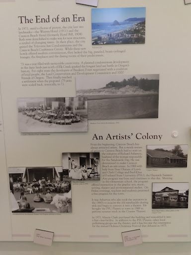 This is a free, donation-only museum in a lovely setting on a side street at the south end of downtown. The structure itself is kind of cool and historical. There is a well done historical timeline running around the inside, which shows you, in pictures and words what was going on in the world and in Cannon Beach. So, when man discovers fire, you can see what was happening in Cannon Beach. There's a room devoted to the town's annual parade, plus sandcastle days. The namesake cannon from the shipwreck is in the museum. I was a bit disappointed that many things were poorly maintained. The Spanish language audios didn't work, nor did two English audios (i.e. pick up the phone to listen and phone was dead). Also, at least one pull-out drawer containing things children would find interesting was broken or snapped back so quickly it was a safety hazard. Also some grammatical errors in the displays, but I'm picky about that. It's worth visiting and making a donation. Wheelchair access is possible... a little dicey for me both with my wheelchair van in the gravel parking lot and coming in from the sloping ...