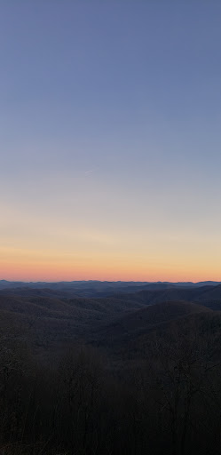 Beautiful location to catch the sunset or sunrise. Specially on this time of the year. The lighting is so delicate as the sun goes down it eve turns it into the perfect environment to have a romantic time with your loved one. We recommend to bring some snacks to enjoy the view but be responsible and take your own trash after spending your time at this gorgeous location. This pictures where taken on a sunny fall day towards the end of December and eventhough you can see what I'm talking about is not even close to be there. The sky shades are breathtaking from this point in the blue ridge parkway. Come and see it...