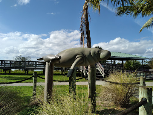 LOCAL TIP: If you walk towards the southwest corner (may have to get around a fence), there is a warm water outlet pipe from the Water Treatment Center where during certain times of the year, manatees congregate there and you'll be amazed. Fishing near the warm water pipe can be outstanding too, but you may want to release your catch since it's living near a sewage treatment center. The park has an obstacle course and track made primarily for the elderly with a concrete walking path between exercise machines that have simple instructions on their use. There is plenty of parking and there are picnic tables under a pavillion- boardwalks line the river's edge too. There is a statue of a manatee and a poster full of facts. I've seen kids playing Pokemon Go and having a good time with their parents during a beautiful sunset. The park is safe most of the time, but there have been the occasional shady person hanging out on the end of one of the boardwalks- they will usually leave you alone and mind their own business (they are mostly harmless and just down on their luck, usually they keep to themselves). There is also a kayak ramp north of the park in the condominiums past the soccer fields- may need to look on Google Maps to find- it also may be for residents of the condos, but many...
