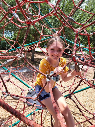 A little gem of a park in the middle of a sun-baked Cape Canaveral. The playground is shaded by mature trees and there are separate areas for young and older kids. The play sets are quite nice, with slides and things to climb. The area for bigger kids also has a cool rope climbing contraption similar to those found in Germany. There are also baby swings and swings for bigger kids. Nice covered picnic area with several tables completed the playground. Didn’t check the bathrooms but they do exist, a short walk up the sidewalk.
