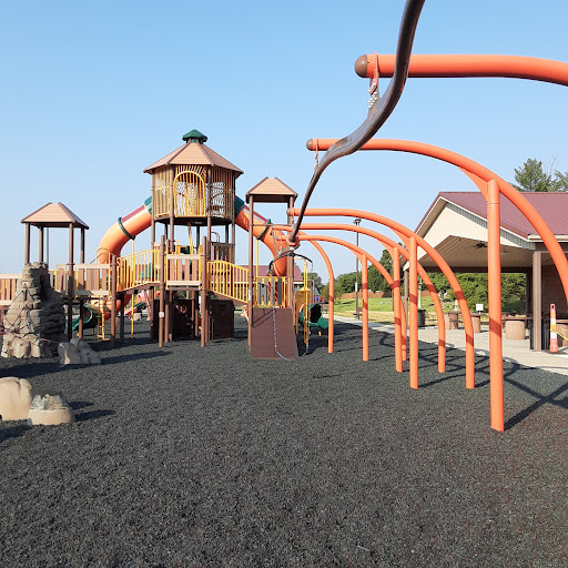 Awesome park. Picnic area, restrooms, water play. The swing zip line was the winner for the older kids by far. My 9 year old and 3 year old loved it and requested to go back the next day on our trip. Google Maps takes you to the cemetery so I advise passing the cemetery in entrance and going down to the next entrance. The park circles around and it's a one way. Looks like currently there is a little bit of construction going on...