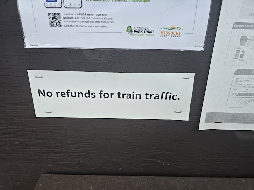 While I am not a state park expert, I have stayed in many of Missouri's state parks, including Lake Wappapello, Van Meter, Mark Twain National Forest, etc. Additionally, I've camped plenty of times all over the state of Missouri in private locations as well. Whoever decided it was a good idea to put a campground next to an active railroad was not thinking. The train rips through every 2-4 hours with its horn blazing all through the night. It's hard to tell from aerial photos, but the train tracks are less than 200' away. Just when you get to sleep here comes the train. 8 pm, 11 pm, 2 am, 5 am, etc. This was quite possibly the worst sleep I have ever gotten in a state park. This alone is worth giving 1 star. I later realized they even put up a sign that says "no refunds for train traffic," which probably is needed because enough people complained about it. If you don't plan to camp here, there are some pretty views, a boat launch ramp, and fishing on the Mississippi River. I think it may be good to visit, but do NOT camp here unless you plan to stay up all night. My only hope in leaving 1 star is that I can save at least one person from getting the world's worst sleep, unfortunately, if you want to camp in a state park there's not a ton of options in this...