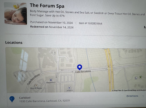 Read moreI had a massage at The Grotto Spa in the Forum Shops in Carlsbad using a Groupon. I bought the Groupon because the spa was in the Forum shops, so I trusted that it was legitimate and reputable. The massage was really intense and not relaxing but my muscles felt better afterward. Unfortunately my masseuse pulled on my head and neck repeatedly, and I have had neck pain for weeks since the massage. I don't think this person was licensed. There was no communication with her because she not did not speak English. Over one month later I continue to have neck pain. My doctor examined me and referred me to physical therapy for the pain. I found other similar poor reviews online for this place. When I bought the Groupon it said the name of the spa was The Forum Spa. When I used it several weeks later the name was The Grotto Spa. There is another spa in Carlsbad called The Grotto Spa on Roosevelt that has good reviews, so it looks like they are hoping people will mistake them for that place. The whole thing is shady and has the potential to harm a lot...