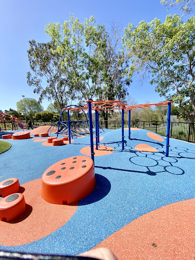 Read moreNew play area features include many opportunities for climbing, new slide types, regular slides, personal spinning chairs and a group rope spinner, an unusual swing for 1 (maybe 2) people, hidden swing chairs under the slides with no long chains, many little hills/mounds. Kids are likely to want to play king of the hill. The bathrooms are right next to the structures. I remember seeing 2 benches for parents in the play structure. There are no natural substances in the fenced play area, plastic, rubber mats, and turf. There is plenty of grass outside of the fenced (it's not fully enclosed with gates or anything like that) area to run and play. A number of picnic tables and benches all around. It looks like there is sidewalk that runs around the whole place too. The place also includes facilities for basketball, tennis, soccer,...