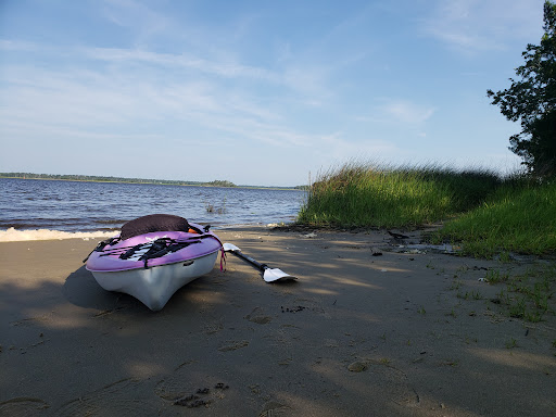 This park was easy to get to, easy to find parking, easy to unload kayak, and had some nice local people that we talked to. We also noticed a couple of police cars come through oh, I assumed they were doing routine checks. although it did seem like the kind of Park where people would go to do things they shouldn't be doing. The bathroom was clean, and again we were really impressed by how easy the boat ramp was to use oh, just a nice gentle slope into the river and then a quick paddle out the shark's tooth island. Highly recommend the park for paddling, but I can only imagine how bad the bugs would be during the warmer months. as we are putting our kayaks into the water, they're being eaten alive...