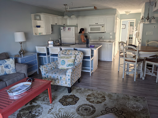 Read more** Just had to update and bump up a star! I received a phone call from the vacation rental company and they were SO kind and resolved all issues! * * Thank you!! :) You can’t beat the location of SandsV 3B... Excellent views, close to restaurants and easy Beach access. It is a public beach access so lots of people coming and going and in and out of the parking lot. ( did not bother us at all) The place does need a little updating. The large deck is slanting significantly, we were afraid to let our littles get close to the rail. The bed in the master bedroom is pretty much an upscale futon, I would recommend bringing some sort of padding to lay down. Same for the couch bed but that’s to be expected. The air return vent above the fridge is pretty gross as were the inside of the cabinets. Our trip was last week and we evacuated Monday night ( our choice and out of anyone’s control) to a hotel inland due to hurricane Isaias. I thought the company did a pretty good job communicating with us during the storm. I would’ve liked to have been told that the power was out so we could’ve spent another night in a hotel prior to driving back to the island, it was pretty miserable for us and our littles to not have air for 14 hours. Hopefully the deck carpet will be fixed, no one came after I sent the storm damage photos so we tried our best to lay it out ourselves. We did love the large kitchen table and the fact we had a washer and dryer. All and all not a bad vacation. But I don’t think we would ever return to this...
